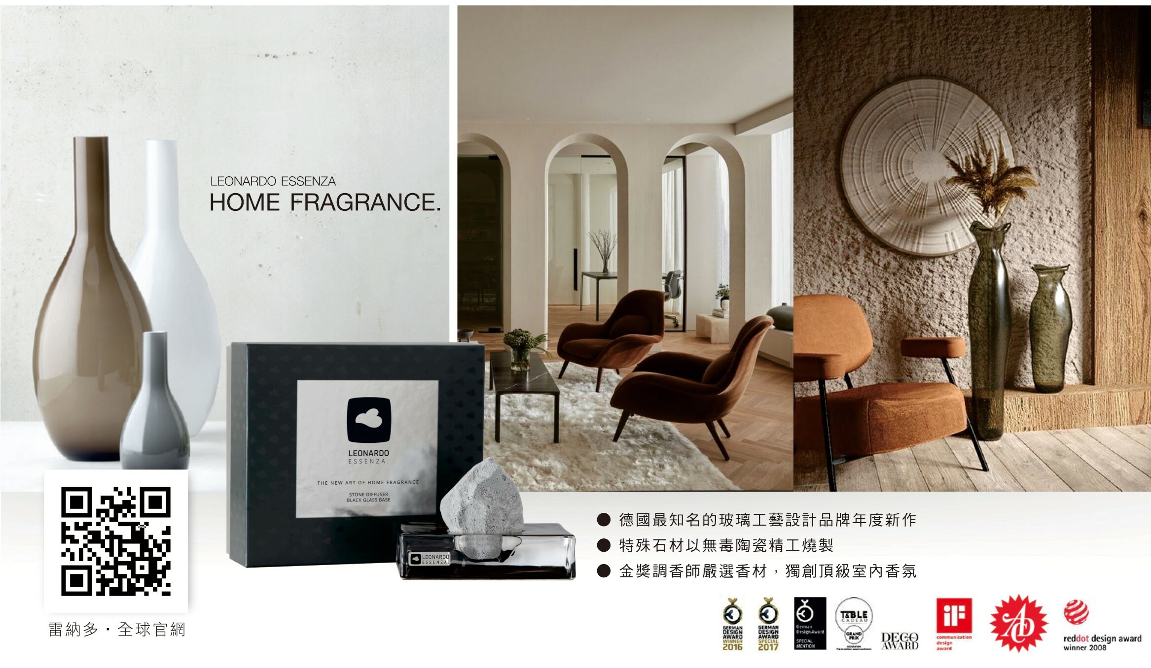 來自德國的LEONARDO創立於19世紀,其設計理念強調「家的感覺」,並運用藝術家達文西的透視法觀念,表現在商品創作上。目前LEONARDO擁有320名設計師,他們不只是單純的玻璃製造商,更利用創新科技推出全新居家香氛系列商品,香氛擴香石搭配摩登設計感的玻璃座,結合義大利式的浪漫品味與德國式的細膩感,打造最讓人嚮往的居家氛圍。