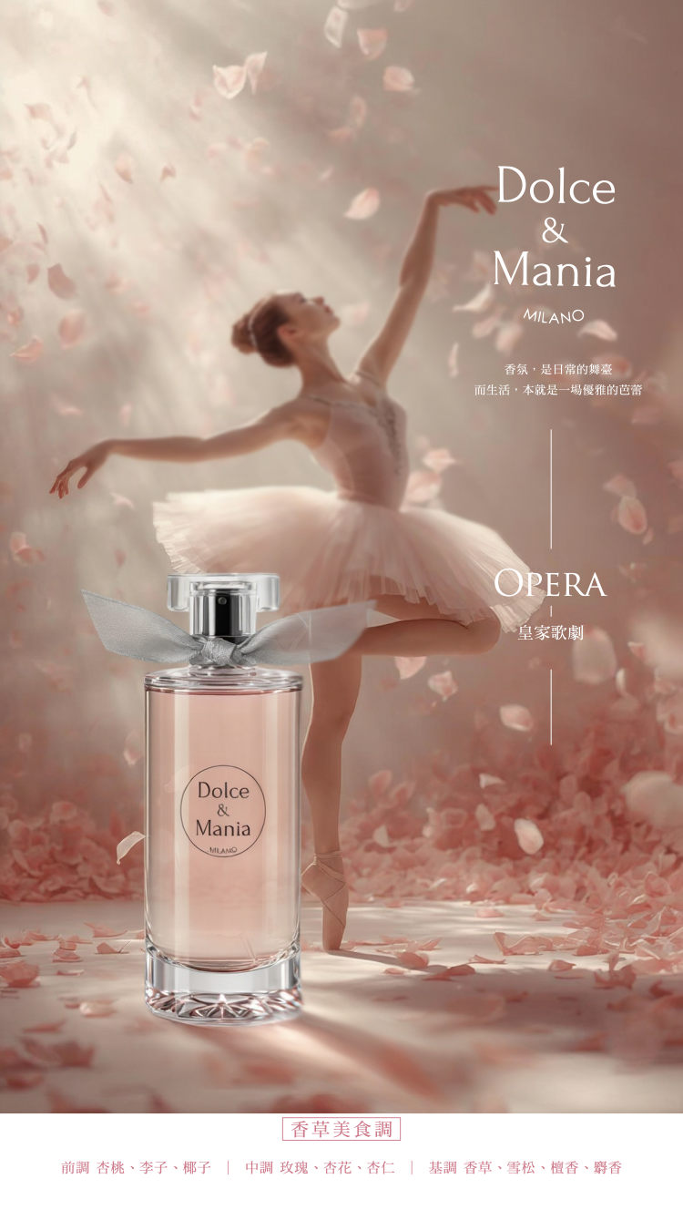 在華麗舞臺上,燈光與幕布緩緩拉啟,皇家歌劇淡香水以層層遞進的香氣描繪芭蕾的優雅與歌劇的張力,隨著光影交織,譜出一場盛大的嗅覺饗宴。